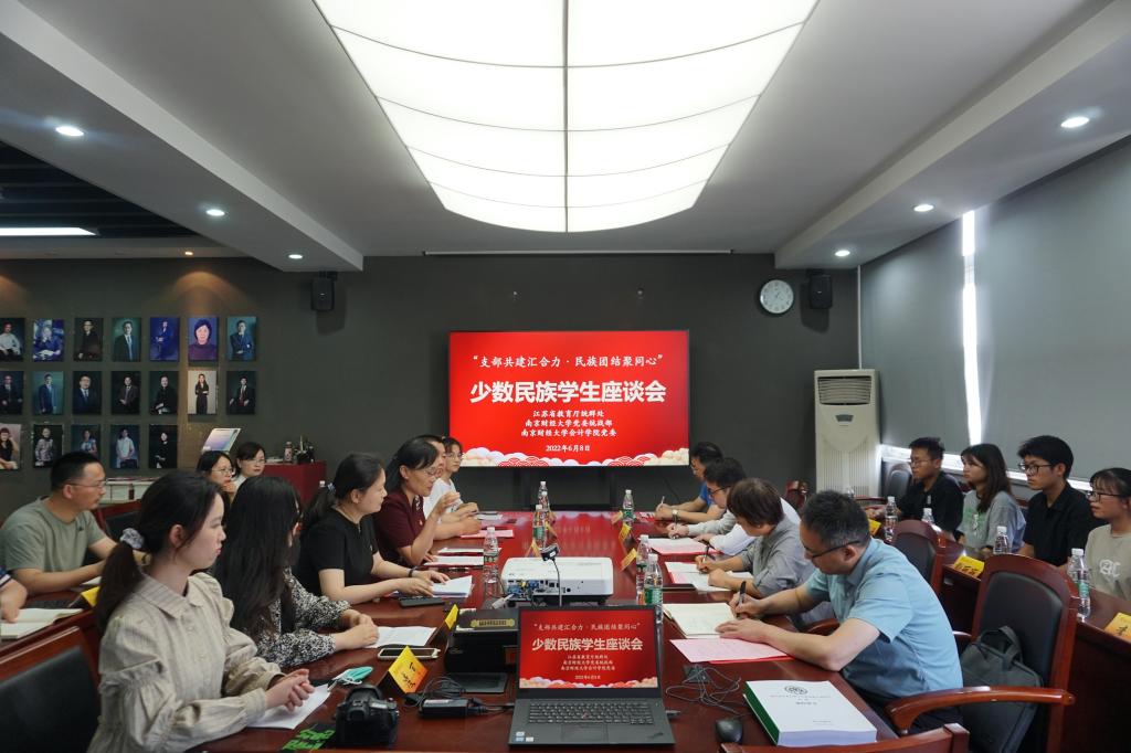 来自维吾尔族、布依族、侗族等十个少数民族的学生代表参加座谈交流,分享了各自的学习、生活、思想等情况。双方支部成员与学生代表亲切交谈,并对同学们的未来发展提出殷切期望。