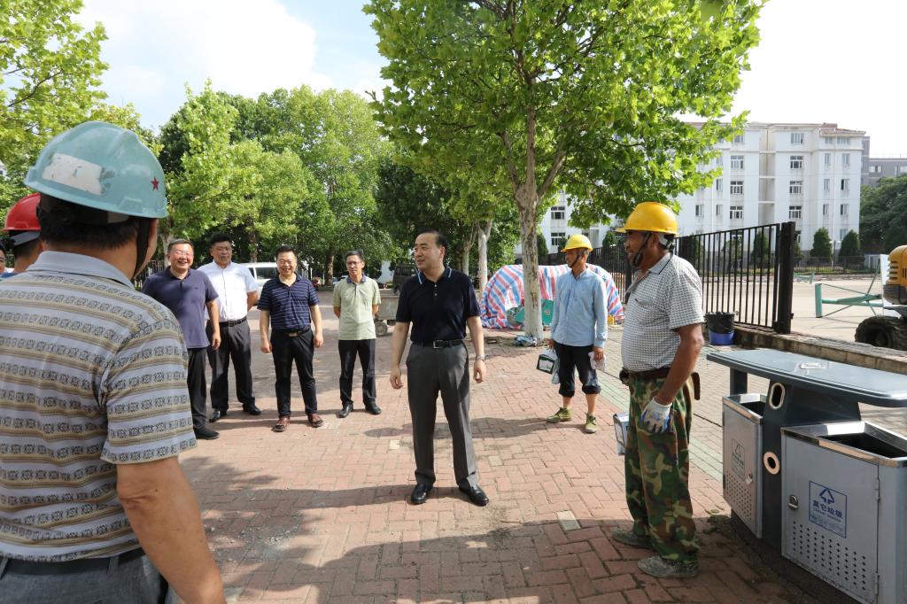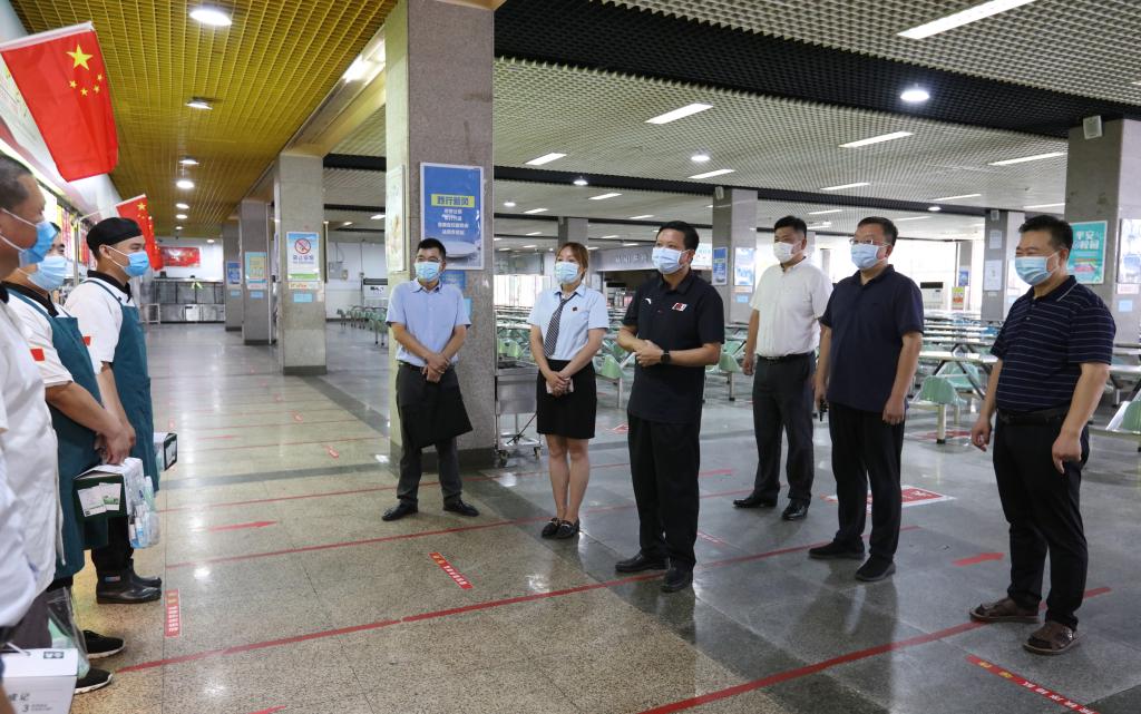 校领导对暑假期间为保障学校各项工作正常有序开展而辛勤工作、默默奉献的一线工作人员表示衷心感谢,叮嘱大家要做好个人防护,注意防暑降温,合理安排作息时间,劳逸结合,确保身体健康和工作开展两不误。校领导强调,暑期施工项目事关师生切身利益,关系着学校未来建设发展,要牢牢绷紧安全生产这根弦,严格按照计划推进工程,按照时间节点确保工程进度,保质保量保安全完成好既定任务,为新学期各项工作顺利开展提供基础保障。希望学校相关部门和值班人员一如既往地履行好岗位职责,以更加饱满的热情、更加昂扬的斗志、更加充足的干劲,切实把牢疫情防控关、施工安全关,做好校园安全管理和服务保障等各项工作,不断推进学校各项事业迈上新台阶。