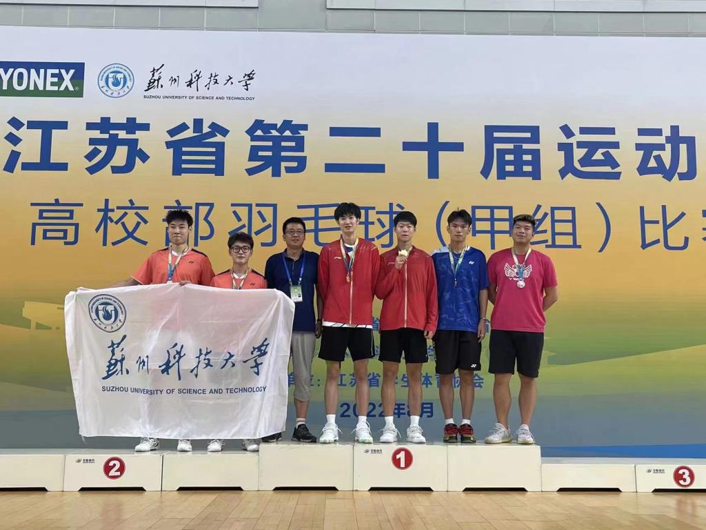 2022年8月2日-6日,由江苏省教育厅、江苏省体育局主办,江苏省体育协会协办,苏州科技大学承办的2022年江苏省第二十届运动会高校部羽毛球(甲组)比赛在苏州科技大学体育馆举行,共有44所院校、326名大学生运动员参加了该项高水平赛事。经过顽强拼搏,我校代表队以不懈努力和过硬的实力喜获佳绩,夺得男子团体、男子双打、混合双打三个项目的冠军,女子双打获得亚军,女子团体获得季军,最终获团体总分第二名。