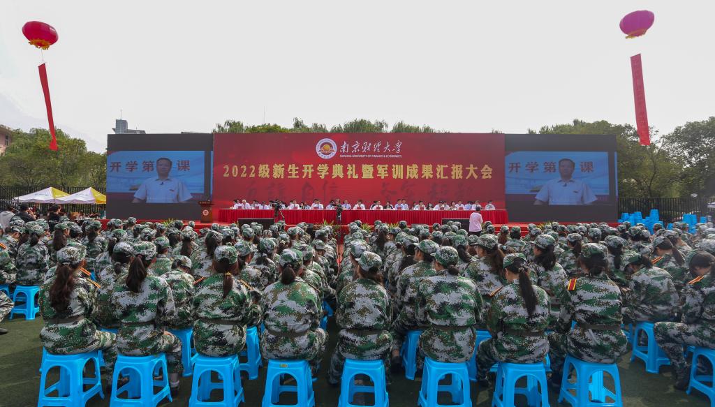 9月30日上午,我校2022级新生开学典礼暨军训成果汇报大会在仙林校区西苑体育场举行。校党委书记张利民、校长程永波等全体在宁校领导及中国人民解放军临汾旅副政委周长青出席开学典礼暨军训成果汇报大会,有关职能部门和学院主要负责人、教师代表、我校5943名2022级新生参加了开学典礼暨军训成果汇报大会。开学典礼暨军训成果汇报大会由校党委副书记(正校级)温潘亚主持。