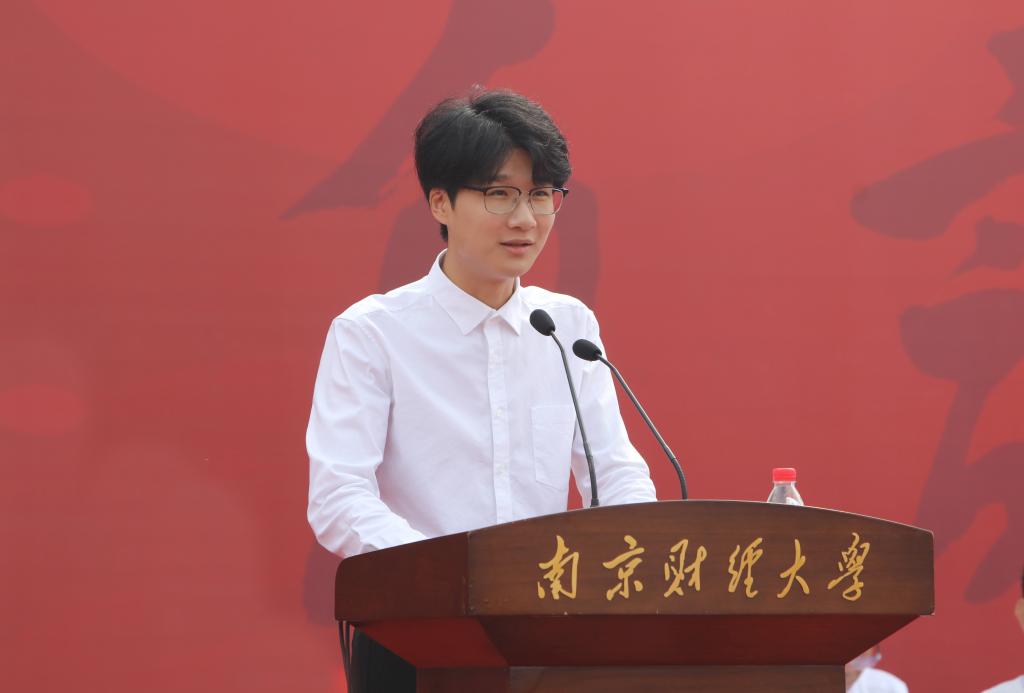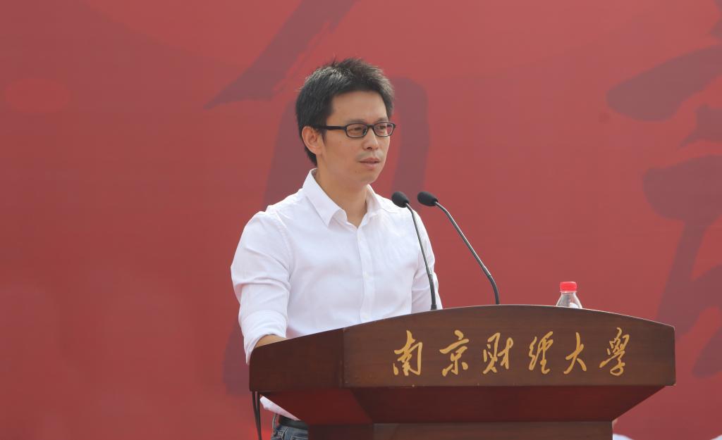教师代表、国际经贸学院副教授谭用发言。他希望同学们不忘初心、攻坚克难,仰望星空、脚踏实地,热爱生活、把握平衡,用自己的青春和汗水,将我们的国家建设得更加美好、更加令人期待。