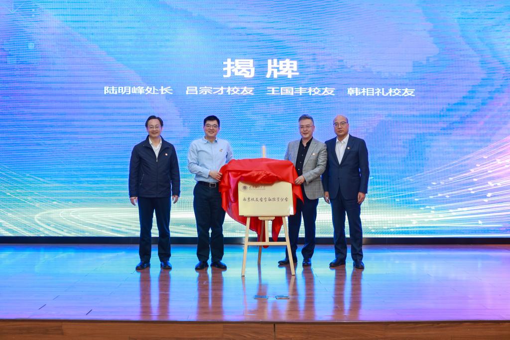 南京校友会会长张先平为南京校友会金融投资分会授旗。陆明峰处长、吕宗才校友、王国丰校友和韩相礼校友共同为南京校友会金融投资分会揭牌。校友总会秘书长王冲为南京财经大学金融投资校友分会(筹)授牌。