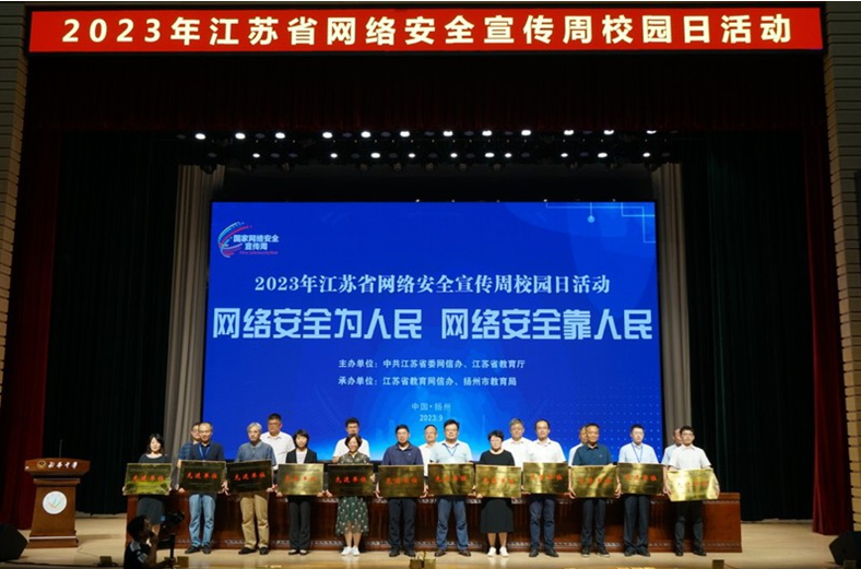 9月12日,江苏省教育系统网络安全宣传周校园日活动在扬州市新华中学正式启动。会上公布了2022年全省教育系统网络安全责任制考核先进单位名单,我校获“2022年全省教育系统网络安全责任制考核先进单位”称号。