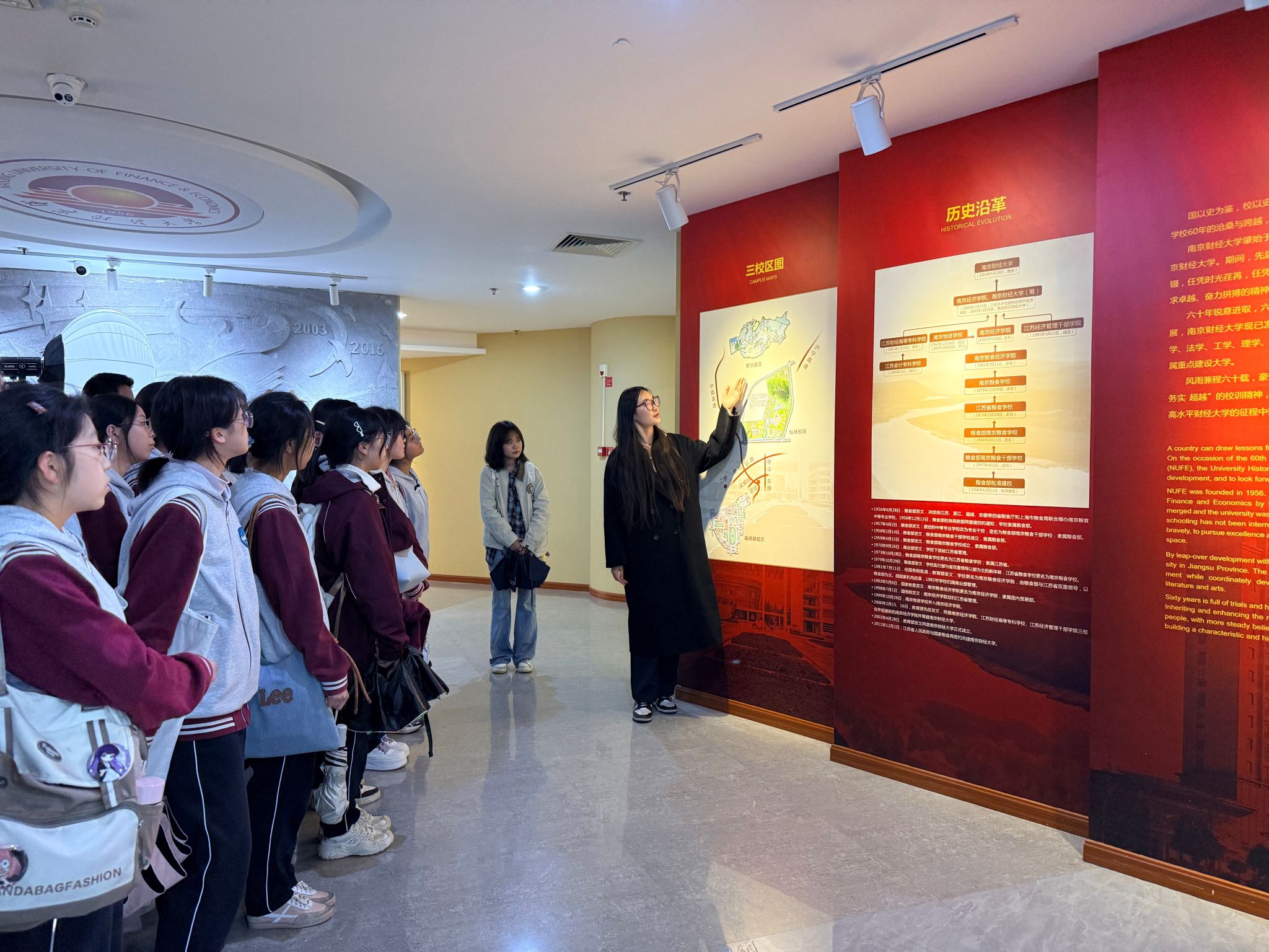 姚文韵副校长代表学校对江宁高级中学师生的到来表示热烈欢迎。她全面介绍了我校办学传统、学科优势与人才培养特色,重点推介了应用经济学、工商管理学等优势学科的建设成效,并介绍了学校在双学士学位项目、校企联培班、国际化办学等领域的创新探索。她表示,在人工智能与数字经济深度融合的时代背景下,经管学科正加速向交叉复合型方向转型,学校致力于培养兼具专业硬实力、数字素养与人文情怀的新型财经人才。我校与江宁高级中学合作根基深厚,“经管创新班”是两校深化“双高”协同育人的关键载体,希望同学们珍惜平台机遇,提前感受大学学术氛围,早日树立“经世济民”的理想追求。