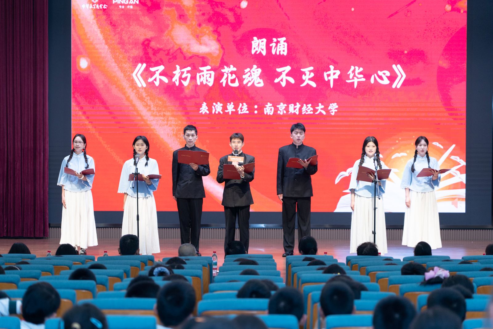 经济学院与南师附中仙林学校小学部(南邮分校)联合举办传承红色基因,共读英烈家书——雨花精神进校园暨雨花英烈精神丛书赠书仪式。活动中,经济学院学子演绎原创话剧《擎旗御侮:罗登贤》,再现雨花英烈罗登贤波澜壮阔的革命生涯;大学生代表深情诵读英烈家书;在“大手牵小手”共读环节,6名大学生与6名小学生结对共读《雨花石上的信仰长歌》,以跨学段互动传承红色精神。学院向小学赠送110册最新出版的雨花英烈精神丛书,学院党委副书记贾亦璞现场讲授微思政课,引导学生从英烈精神中汲取奋进力量。