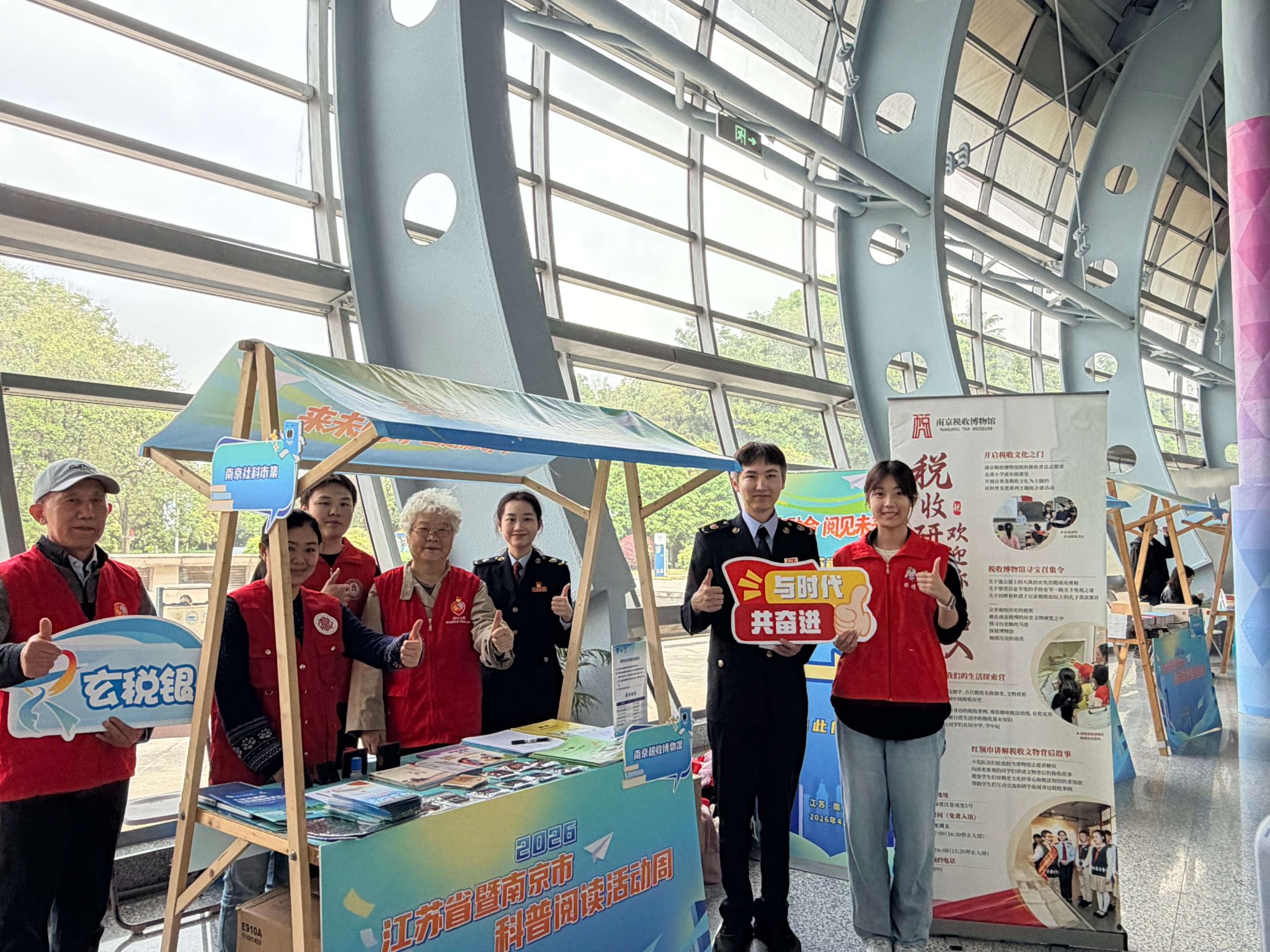 财政与税务学院师生走进南京科技馆,参与江苏省暨南京市科普阅读活动周。学生志愿者与南京税收博物馆、玄武区税务局社科普及志愿者一起,向游客推荐小学至大学不同对象的税法知识读本及《南京税收历史逸闻趣事》,并设置趣味问答、赠送印花税票钥匙扣、盖章打卡等互动环节。