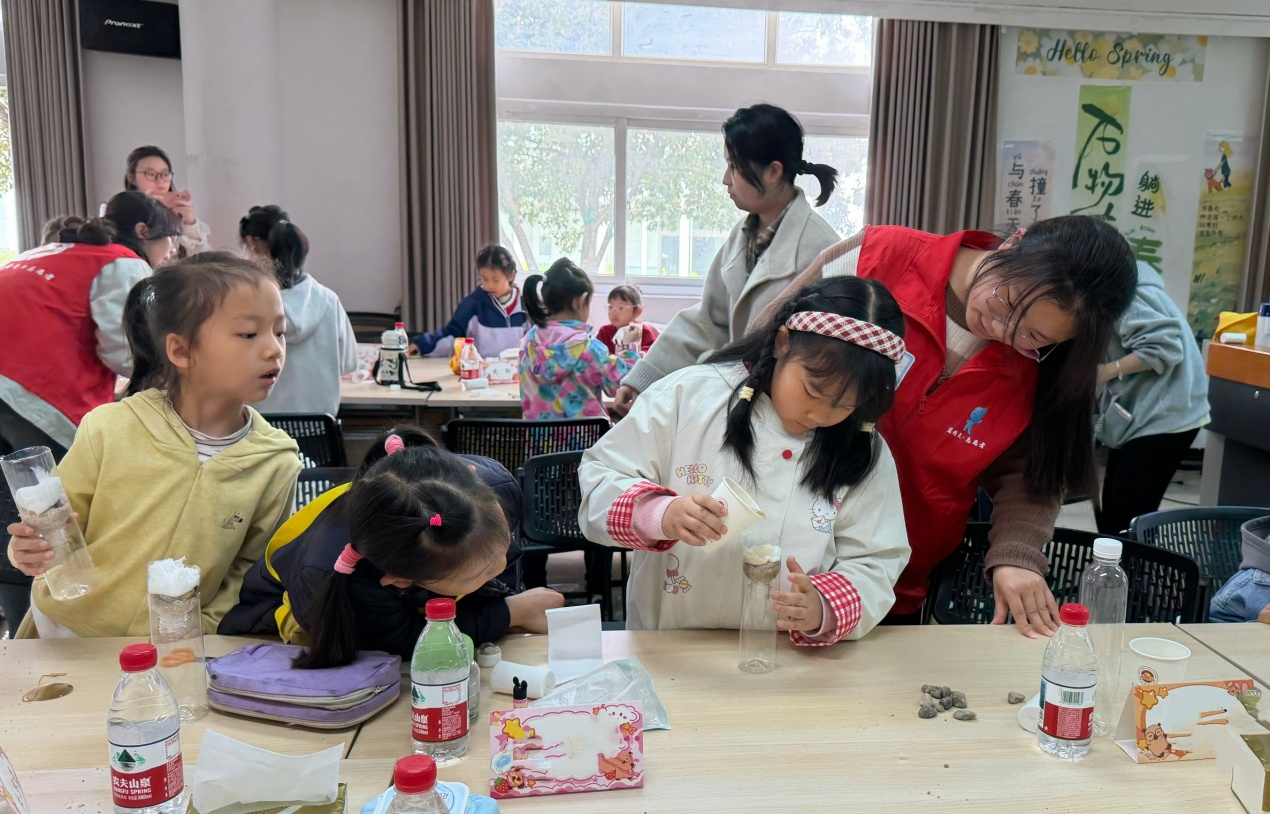 “快看,我的节水装置成功啦!”南京财经大学校园里,一群孩子兴奋地围在一起,小心翼翼地调试着手中用塑料瓶和吸管拼装的小装置,水流缓缓通过,他们脸上写满了成就感。这个春假,南财青年教职工们不再为“娃去哪儿”发愁——学校工会、艺术设计学院和团委接连推出了两份“带娃方案”,一边是“艺润童心”公益书画班,一边是“守护春苗”研学训练营,让教职工子女在爸爸妈妈工作的校园里,开启了一场特别的“春假之旅”。